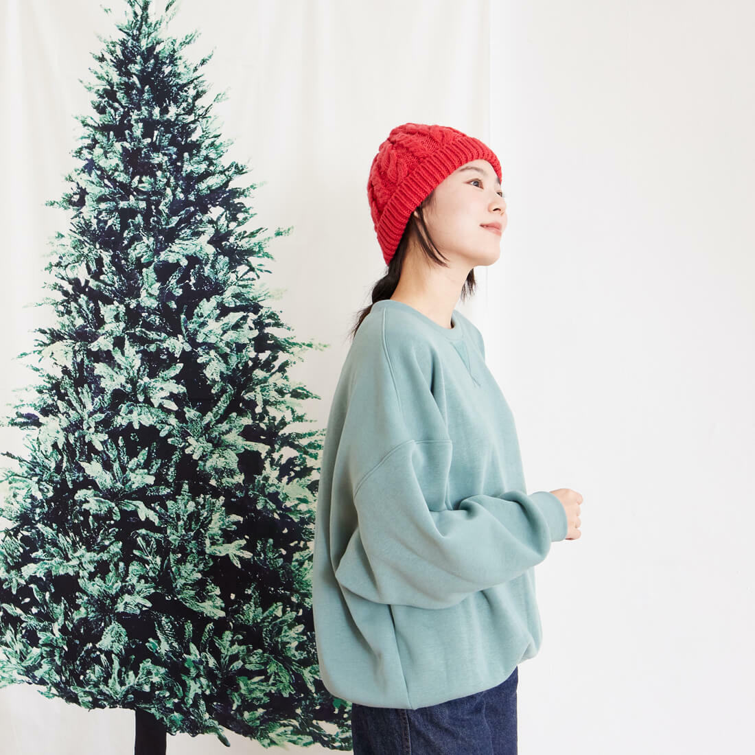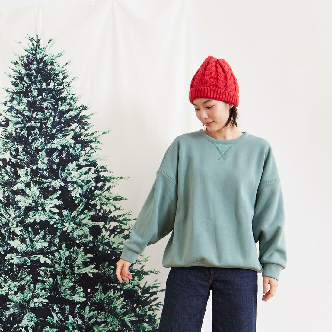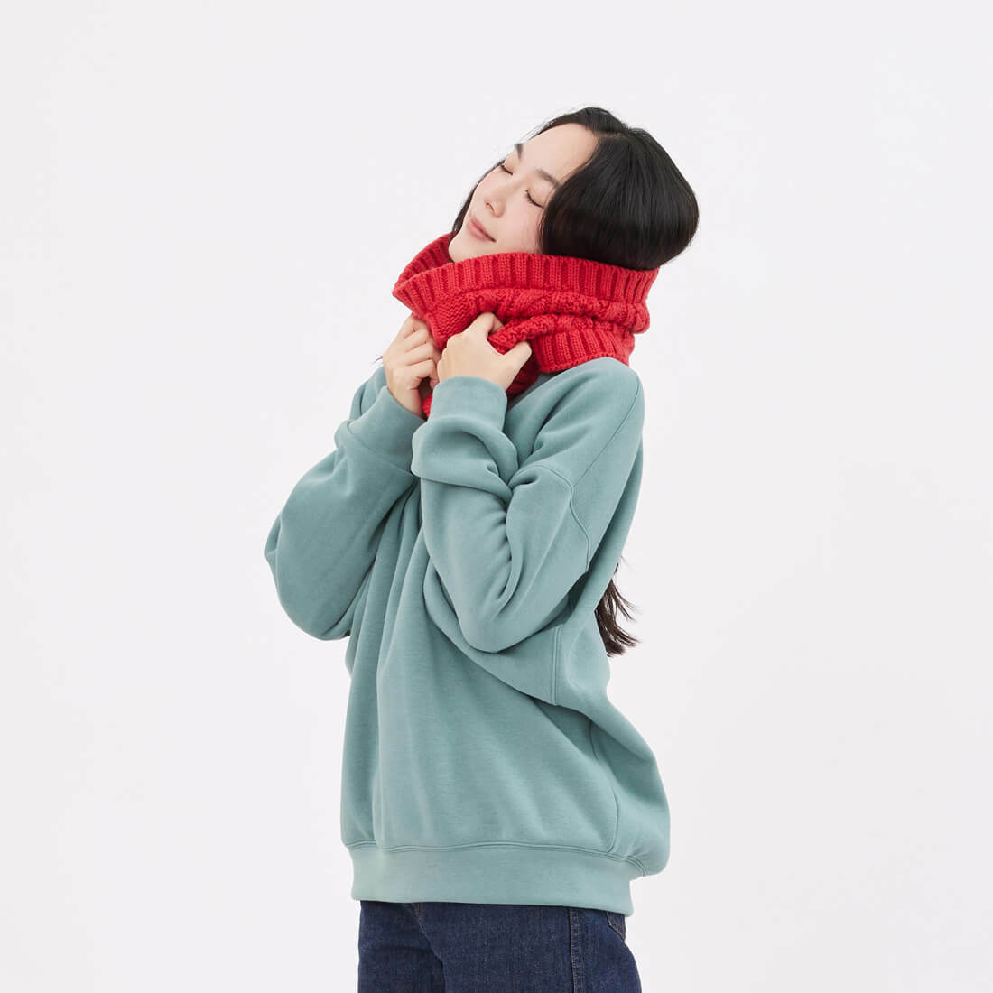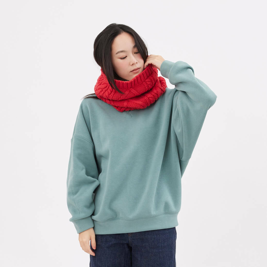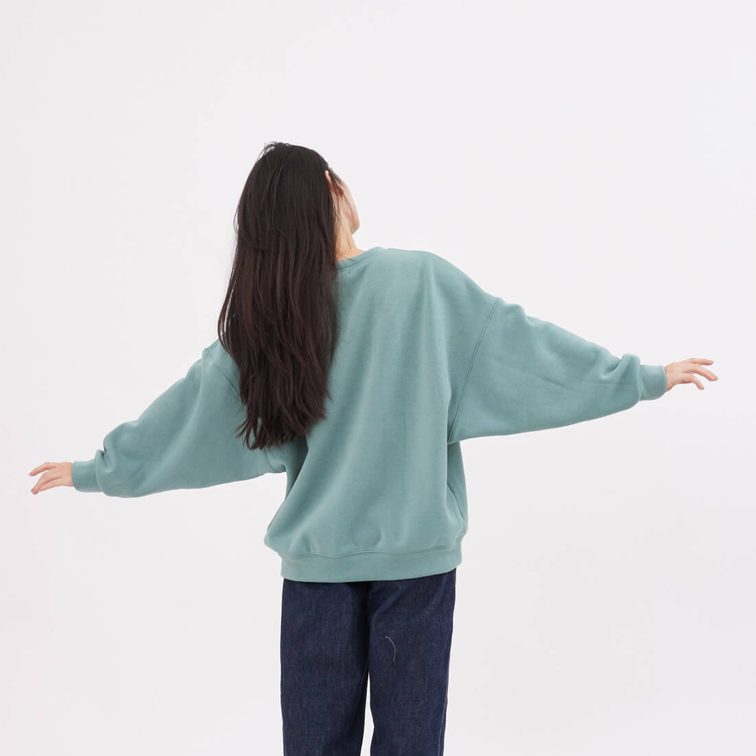 Effie厚磅寬袖搖粒絨大學T/湖綠