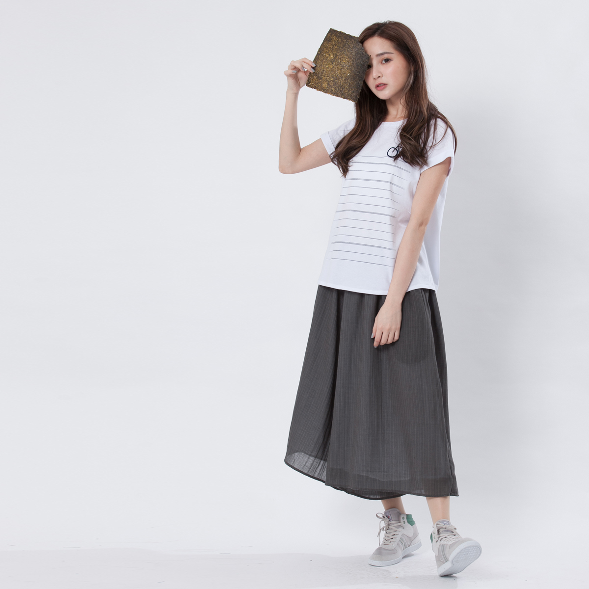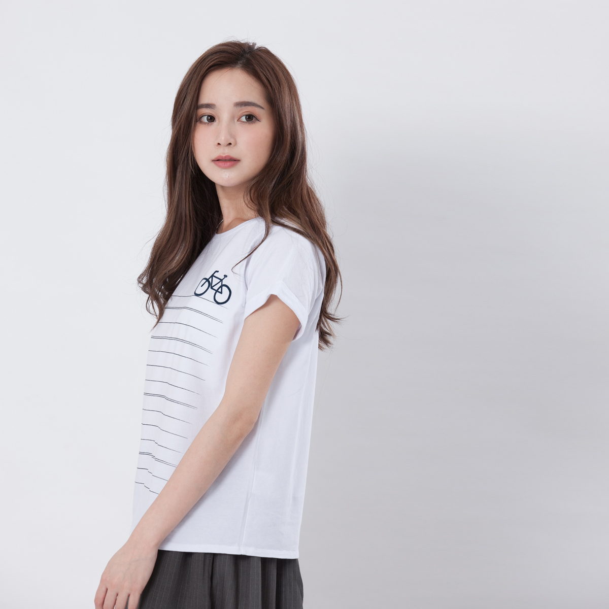 這款創意條紋T恤以簡約白色為底,搭配俐落水平線條與植絨腳踏車圖案,展現日系休閒感。選用柔軟棉料,寬鬆舒適剪裁,讓你夏日穿著透氣不黏膩。輕鬆搭配短褲、裙裝或寬褲,打造清新自在風格,是女孩們衣櫥中不可或缺的百搭單品。