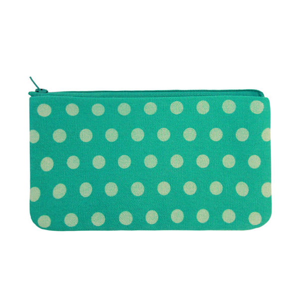 水玉點點拉鍊帆布小物包 湖綠
