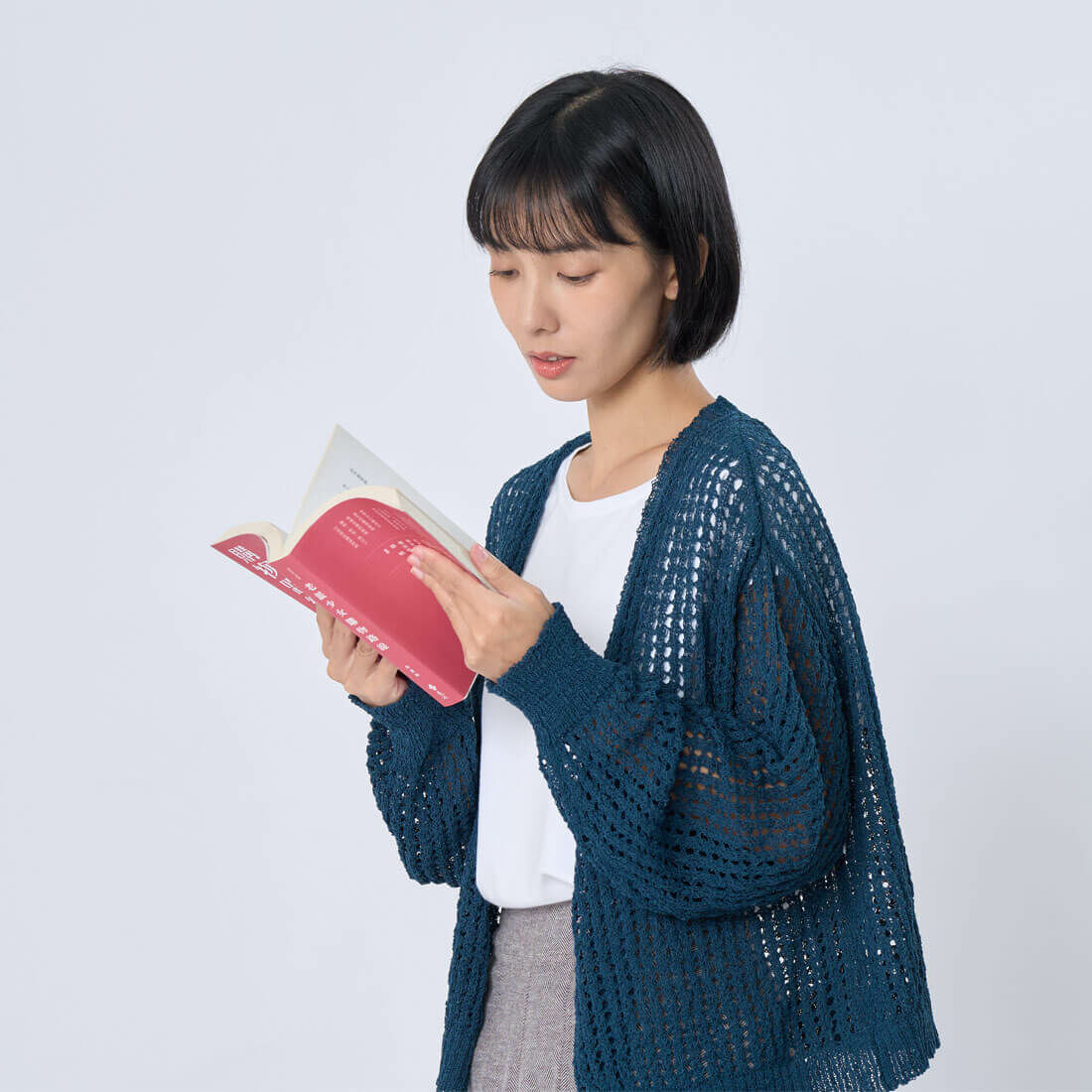 在簡約素色上衣外多搭一件罩衫,立刻展現迷人且隨性的自在氛圍。這款細勾針挑洞針織罩衫,輕盈透氣,適合春秋換季穿搭,既能增添層次感,又能帶來優雅與成熟氣質。