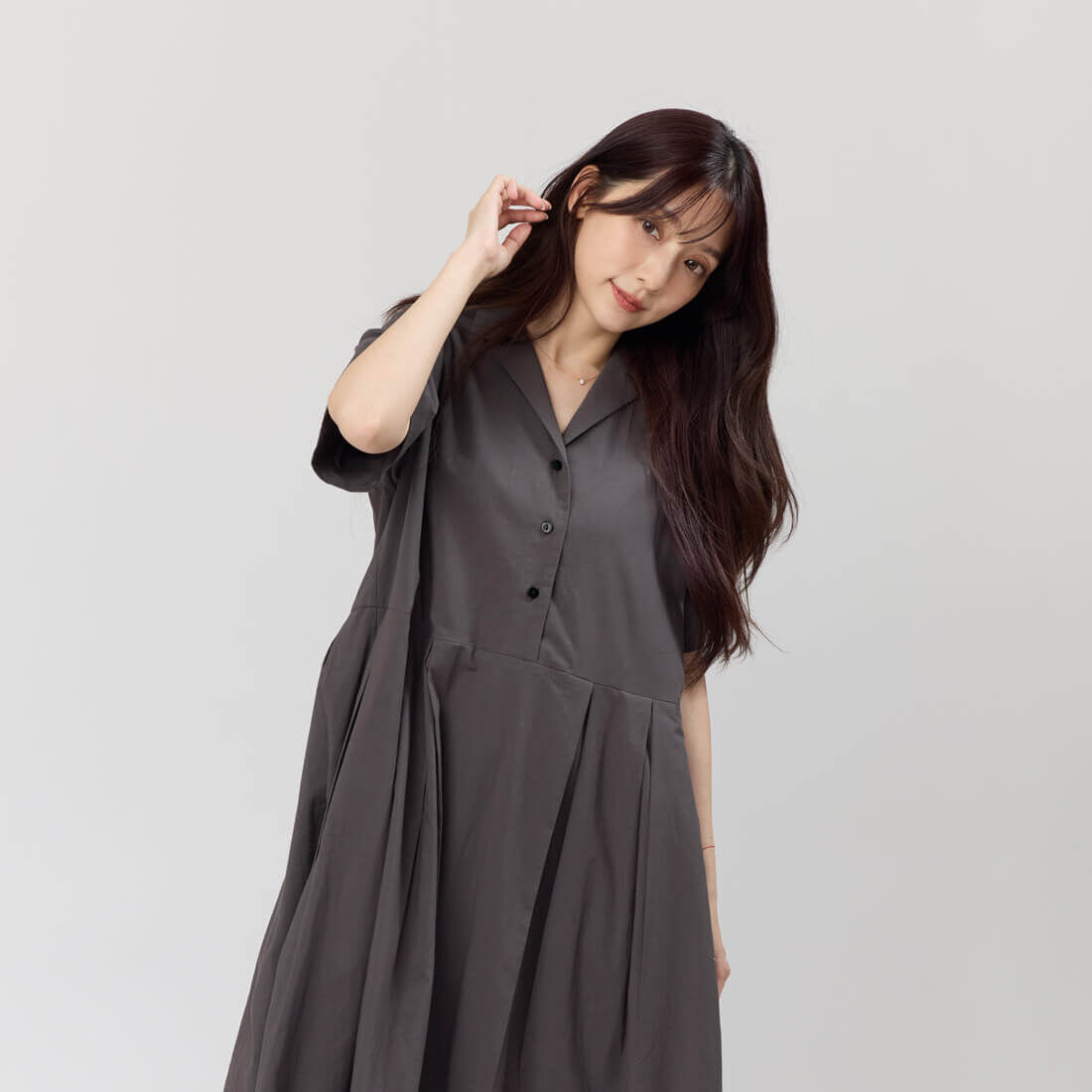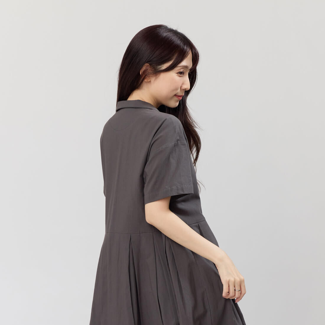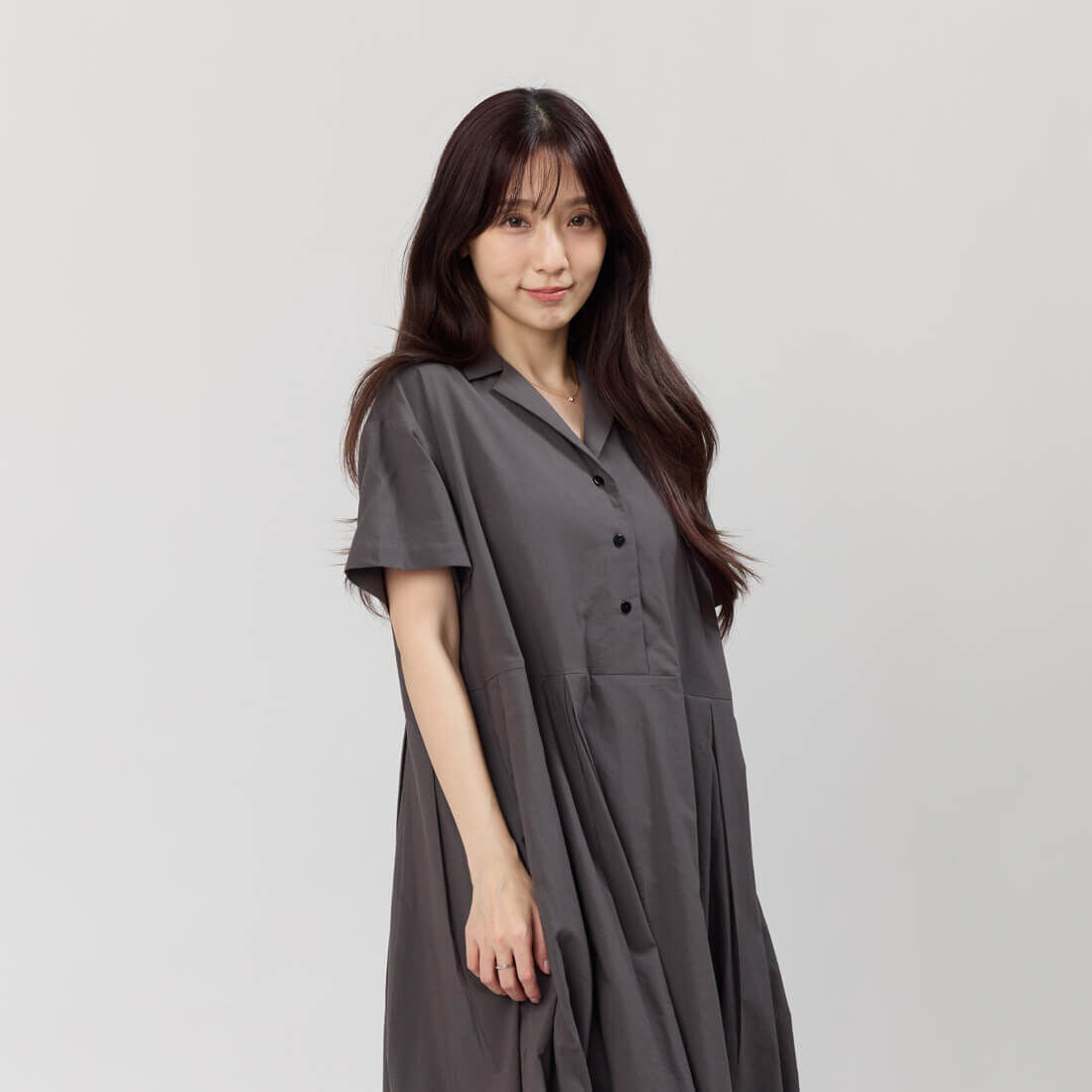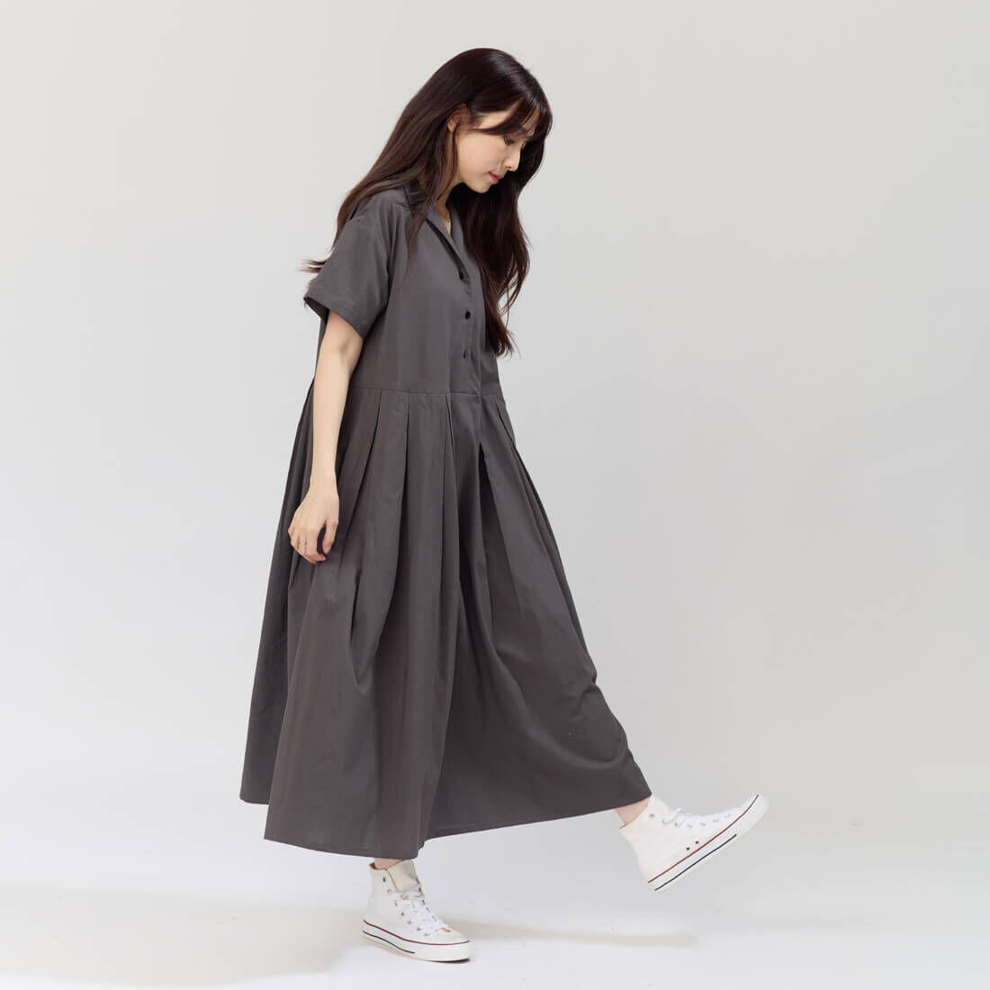 翻領的半開襟鈕扣洋裝融合學院風格與舒適的寬鬆版型,讓您穿著自在無拘。獨特的腰身設計能巧妙隱藏身型,無論是搭配休閒鞋還是平底鞋,都能展現隨性時尚,適合各種場合如約會、聚會或休閒出遊。素色純棉布料親膚舒適,透氣材料適合夏秋季節,V領反摺翻領設計突顯優雅線條,隱藏的側口袋兼具實用性,台灣設計少量製作,獨特性高。