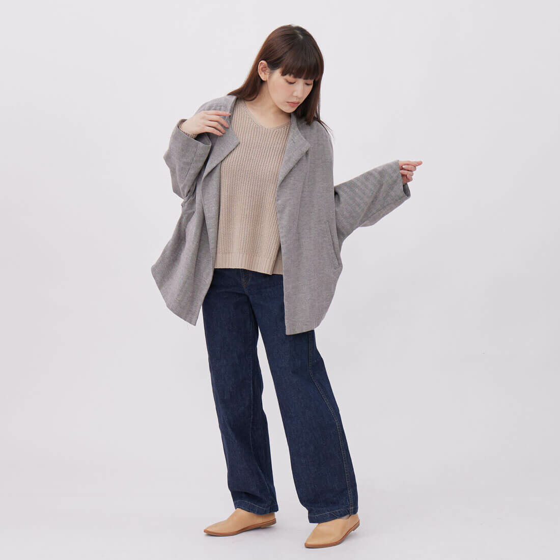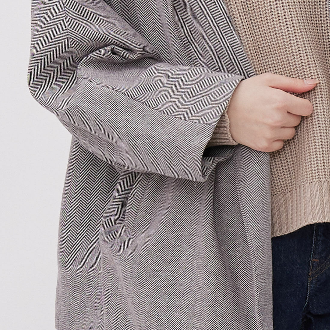 圓弧的版型看起來減齡又自在,兩側的口袋,冬天可以藏手保暖。