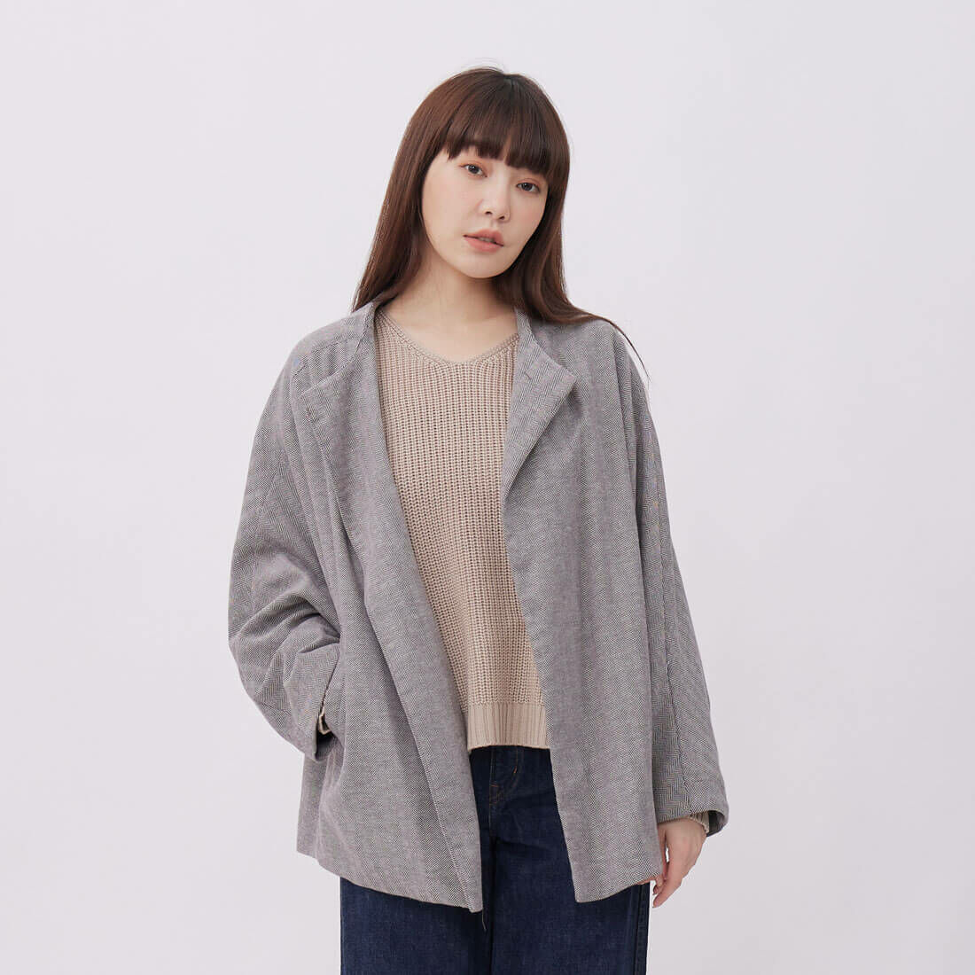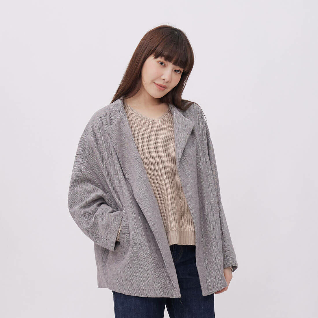 沒有鈕扣的簡潔開襟設計,舒適中加點隨興的帥氣。