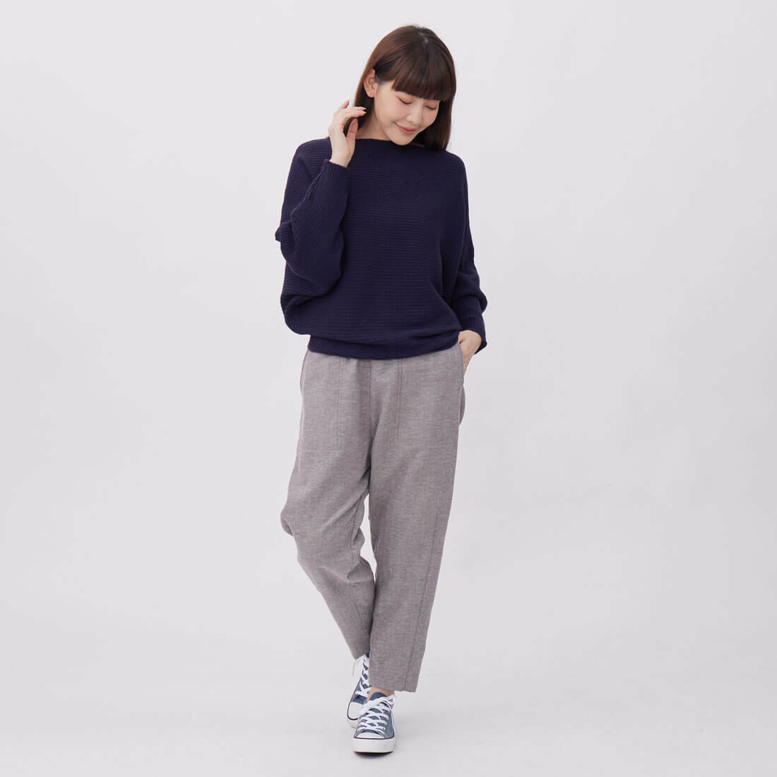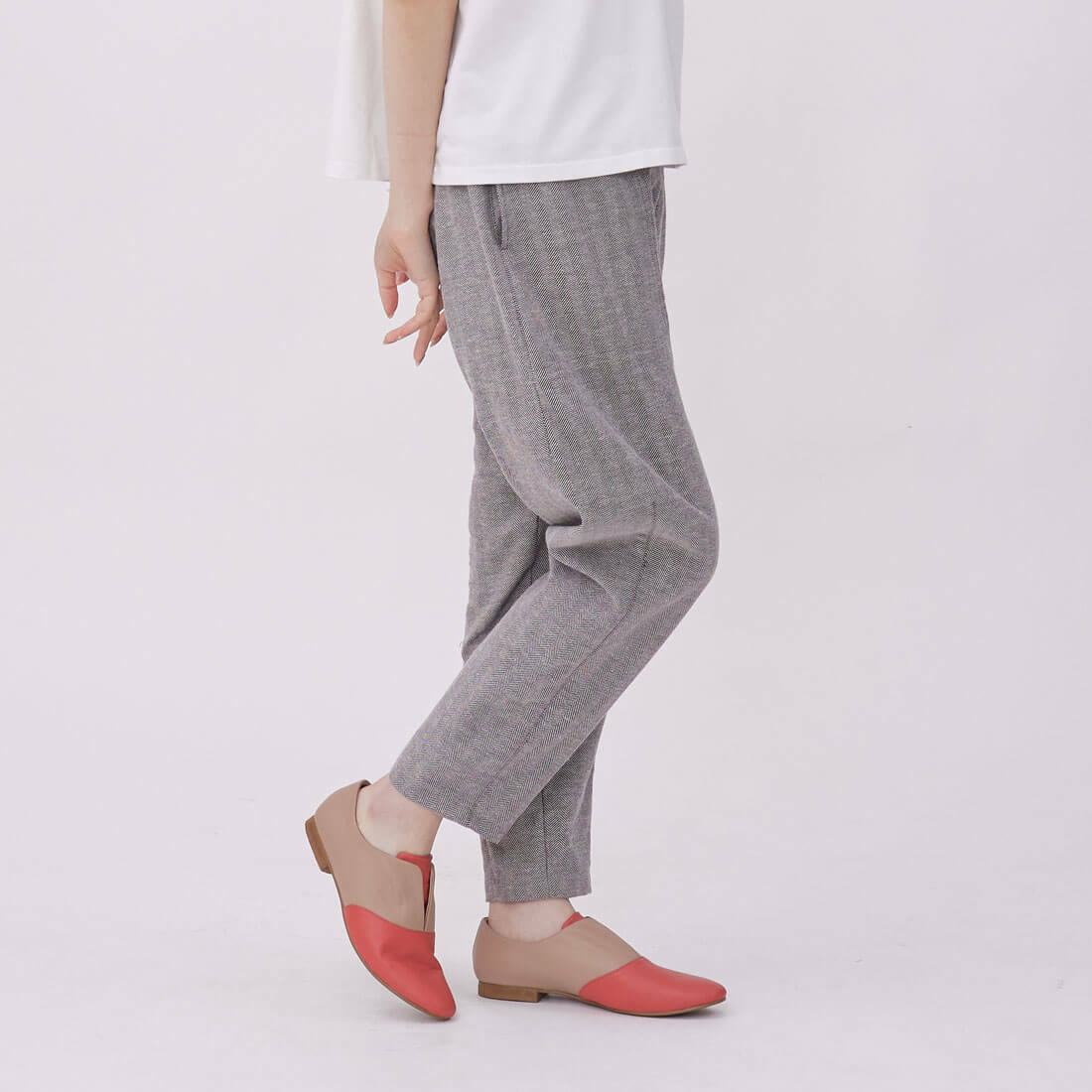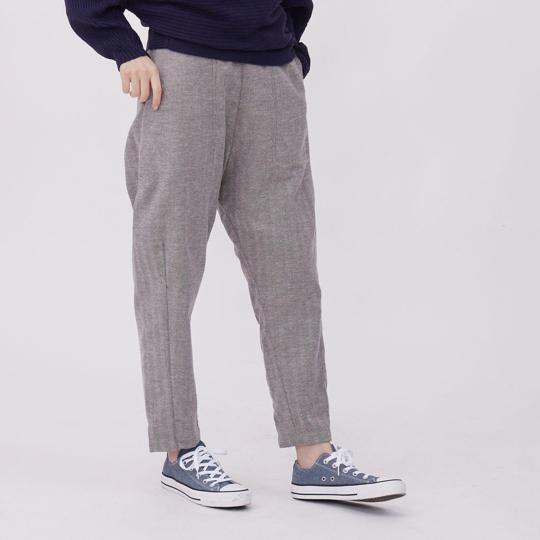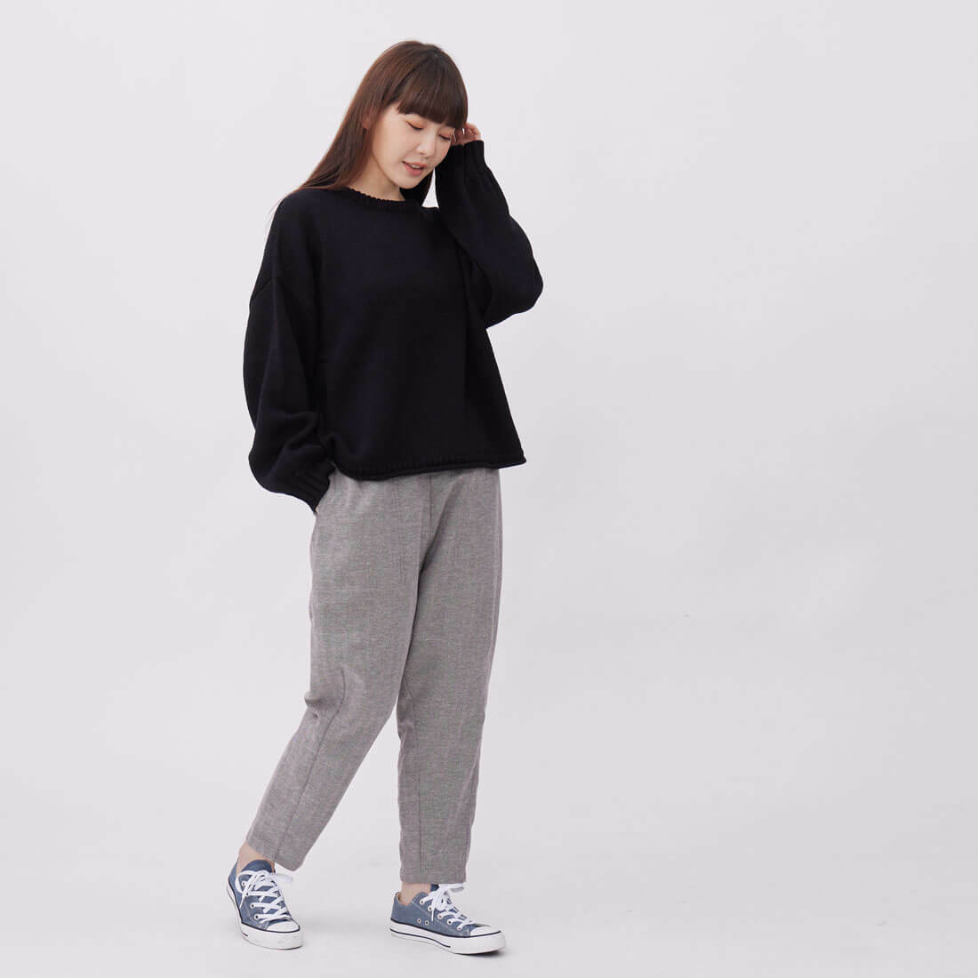 上寬下窄的蘿蔔褲型,輪廓真的很特別,有如西裝褲縫線細緻!