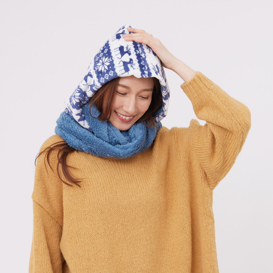 冬日必備的溫暖配件毛絨連帽轉轉脖圍