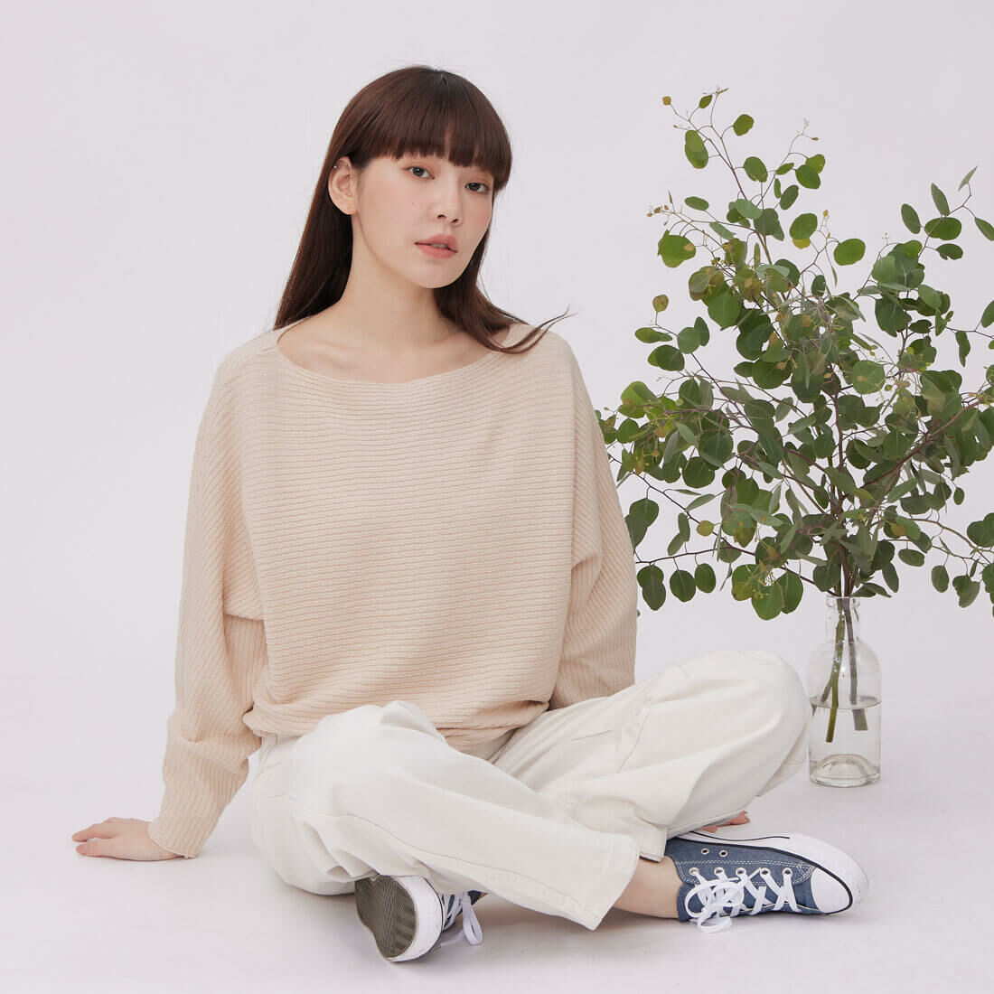 船型領看得見一點點鎖骨,小露性感,有一點設計感,但不誇張,而且簡單穿搭就很有型。