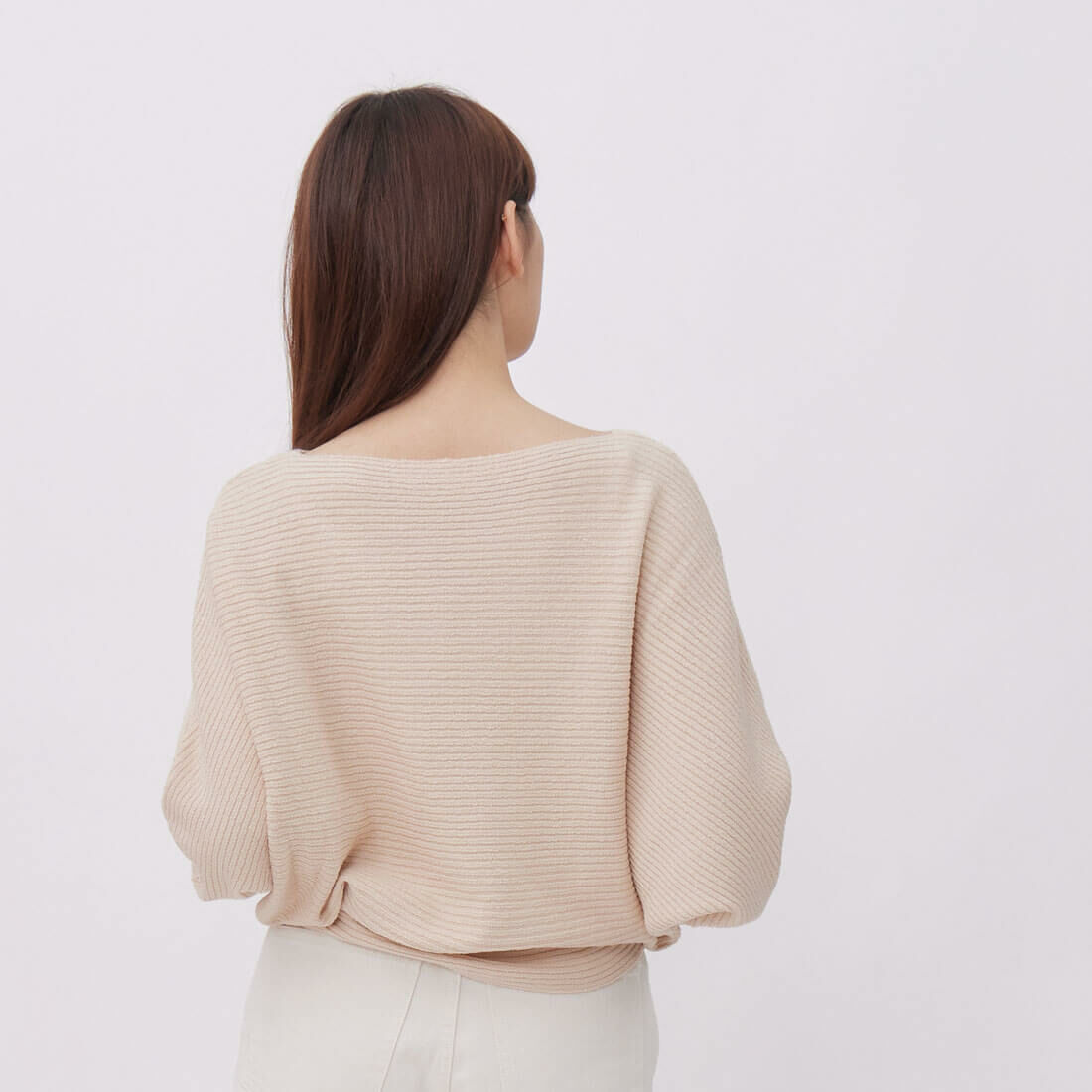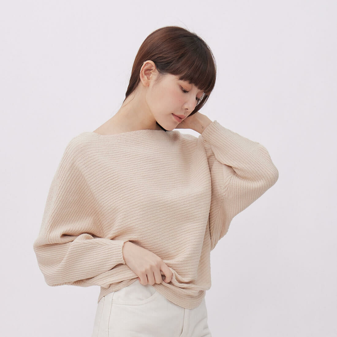 船型領看得見一點點鎖骨,小露性感,有一點設計感,但不誇張,而且簡單穿搭就很有型。