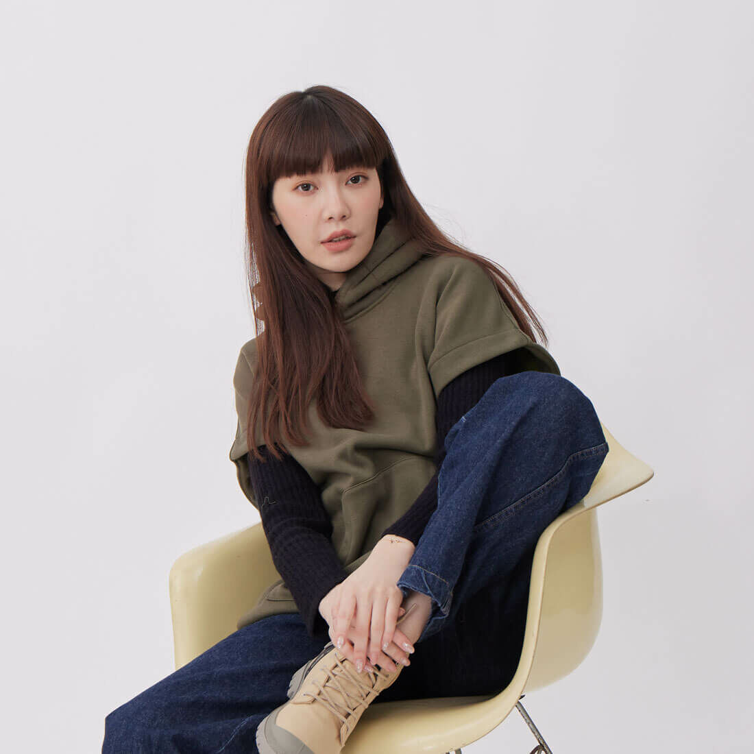 深綠色搭配出不一樣的休閒感