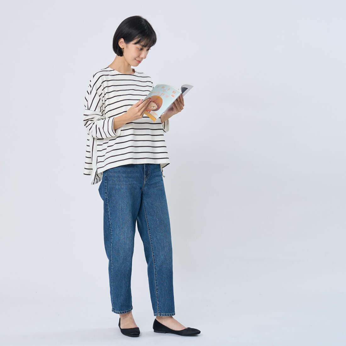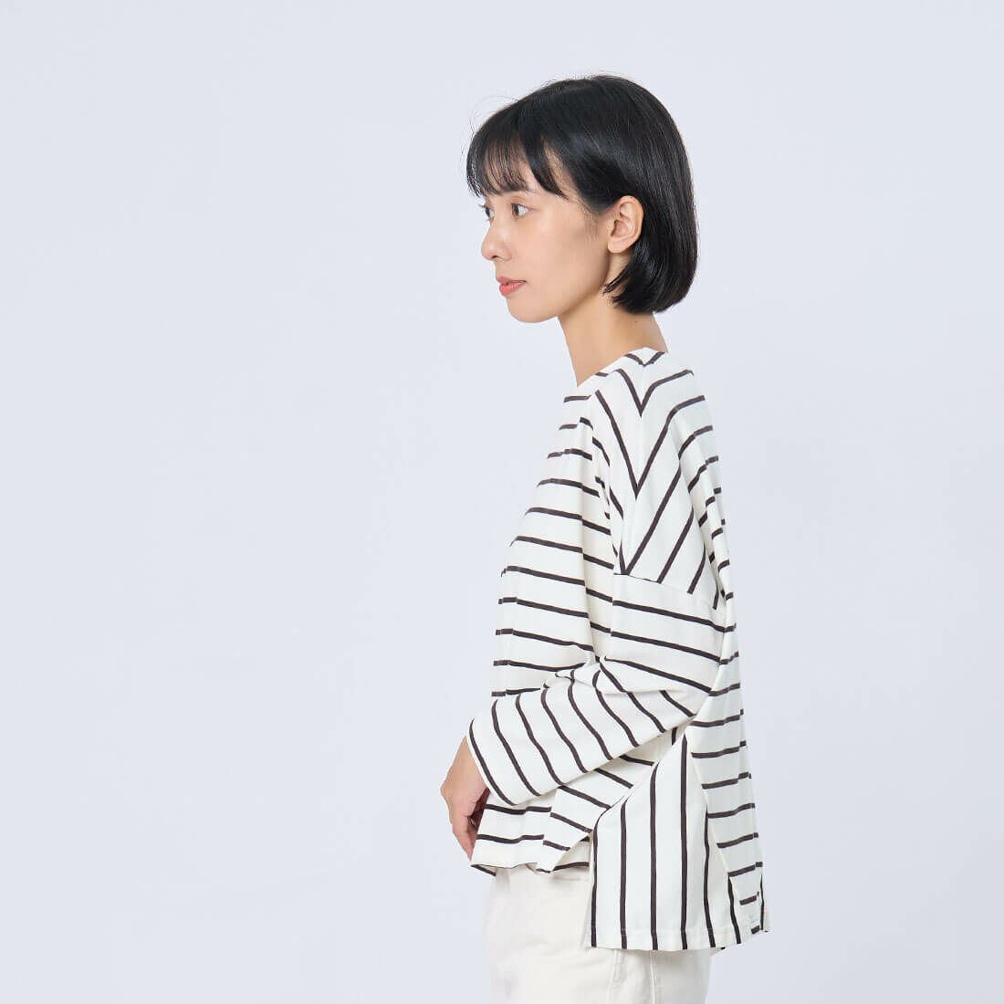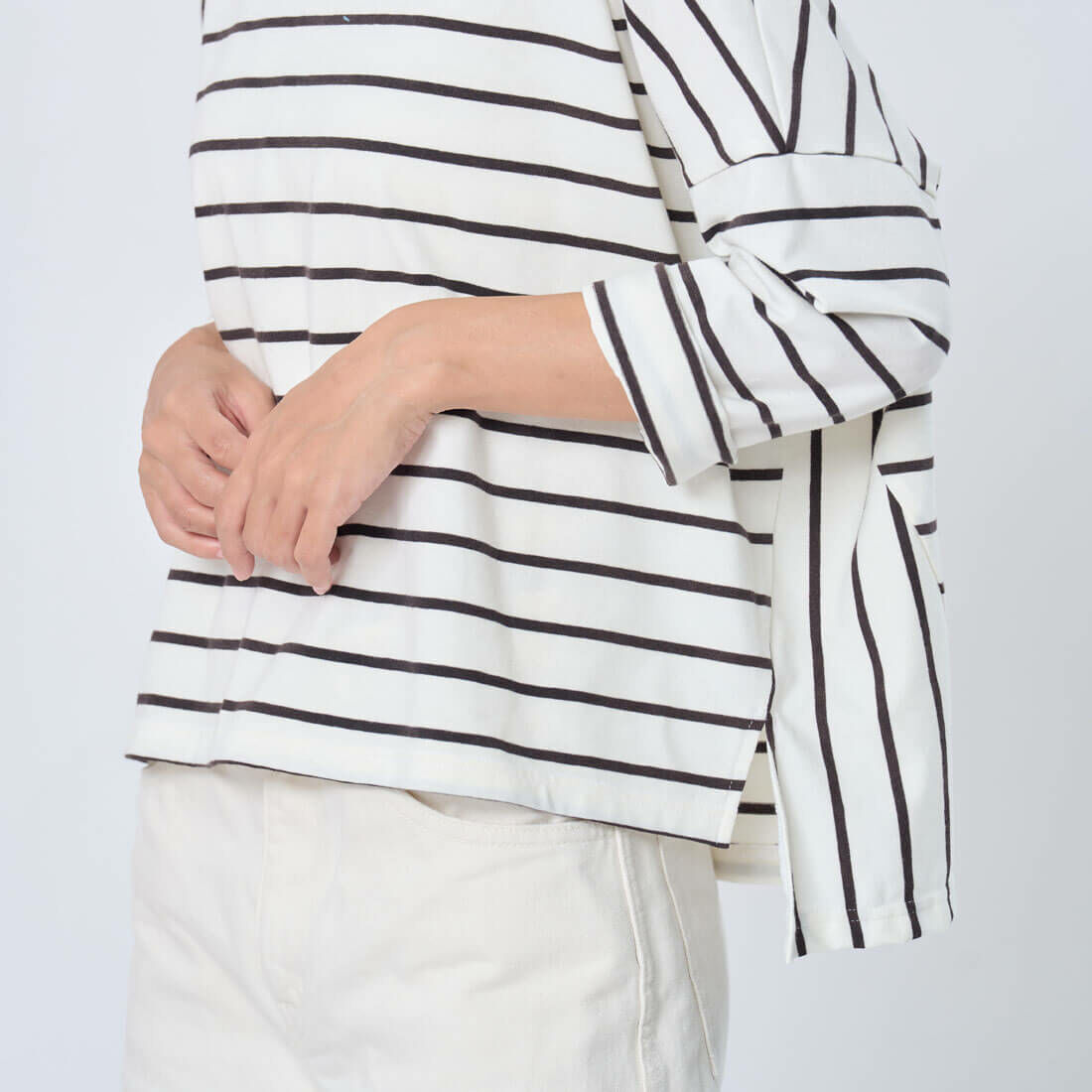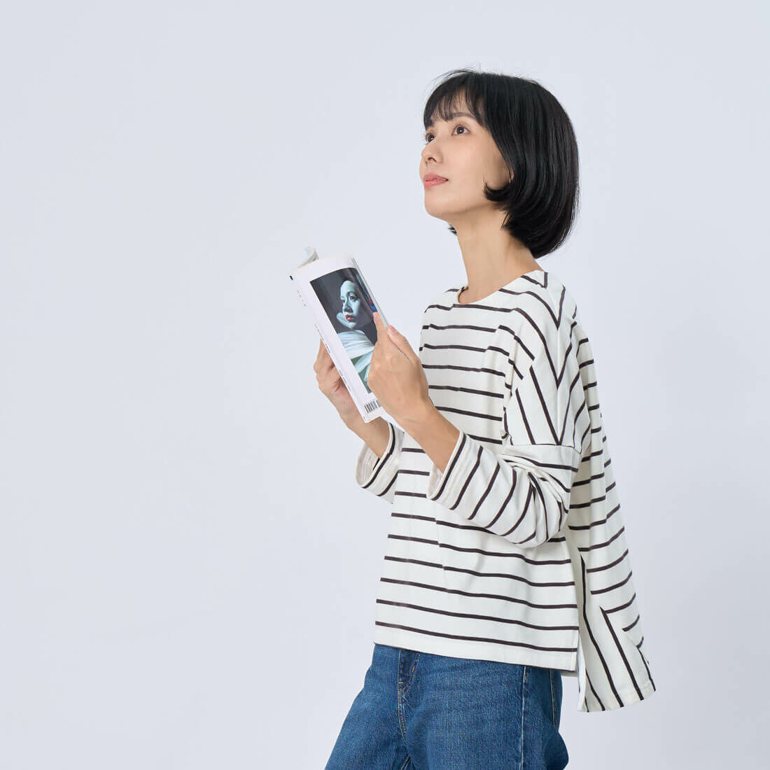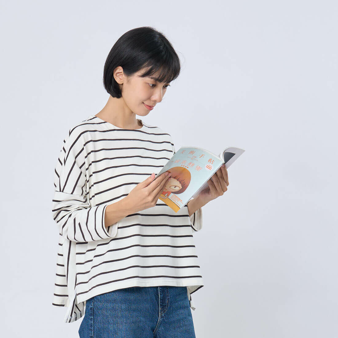 這款日系簡約風的寬鬆條紋上衣,是每天穿搭都不會出錯的百搭單品。由透氣舒適的棉質混紡製成,無論是在夏天的冷氣房,還是秋冬微涼的氣候中,都能讓你自在舒適。