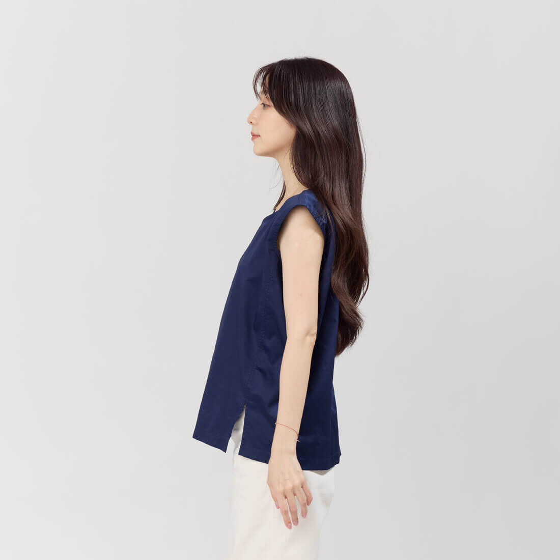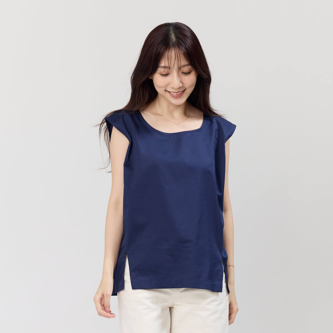 藍色素面上衣展現清新夏日風格,穿著無負擔,在炎熱天氣中保持舒適。透氣的100%棉質材料不會讓您在夏天感到黏膩,合適的肩寬和完美的手臂線條設計使整體穿著更加合身舒適。成熟優雅的廓形設計提升了整體時尚感,是夏季必備單品。