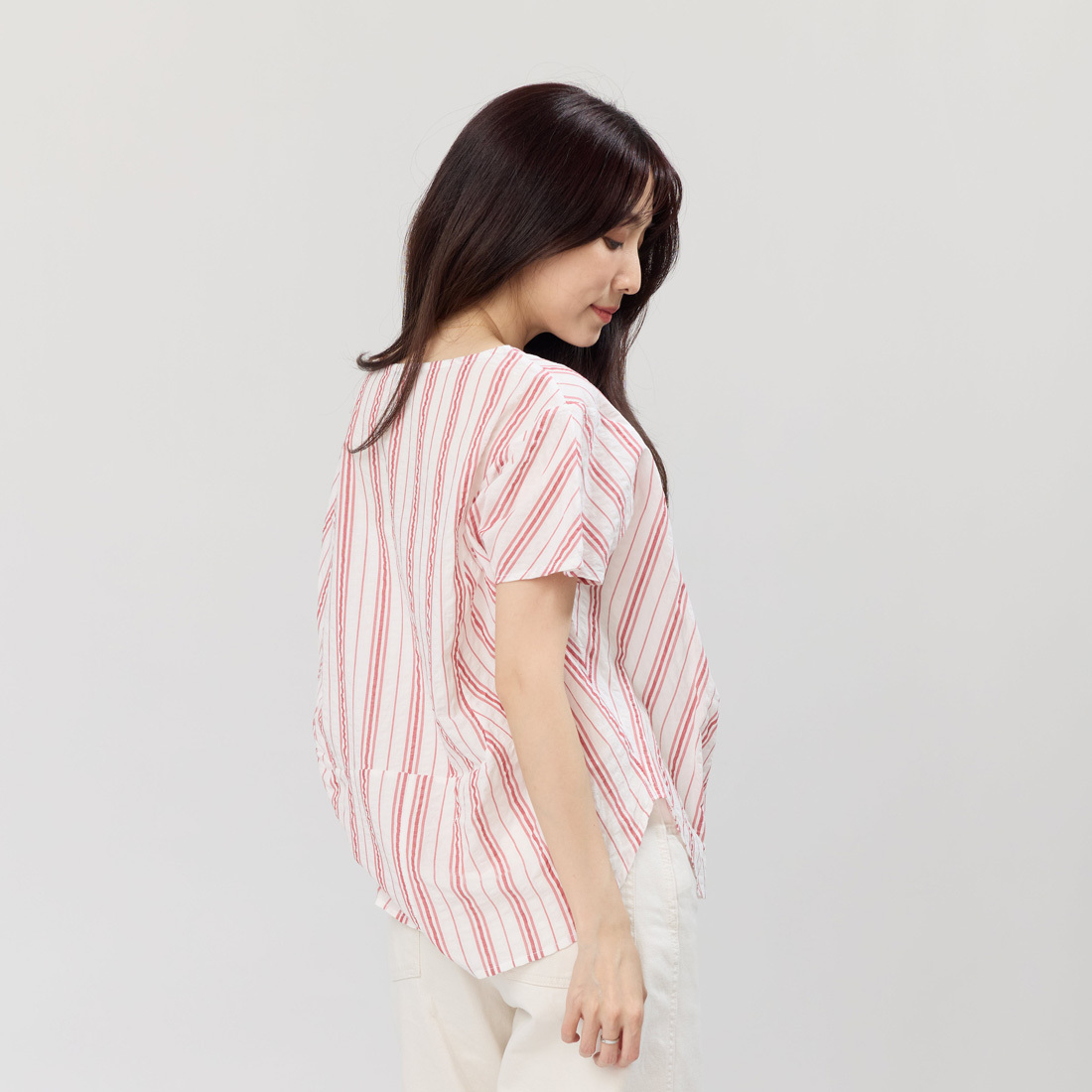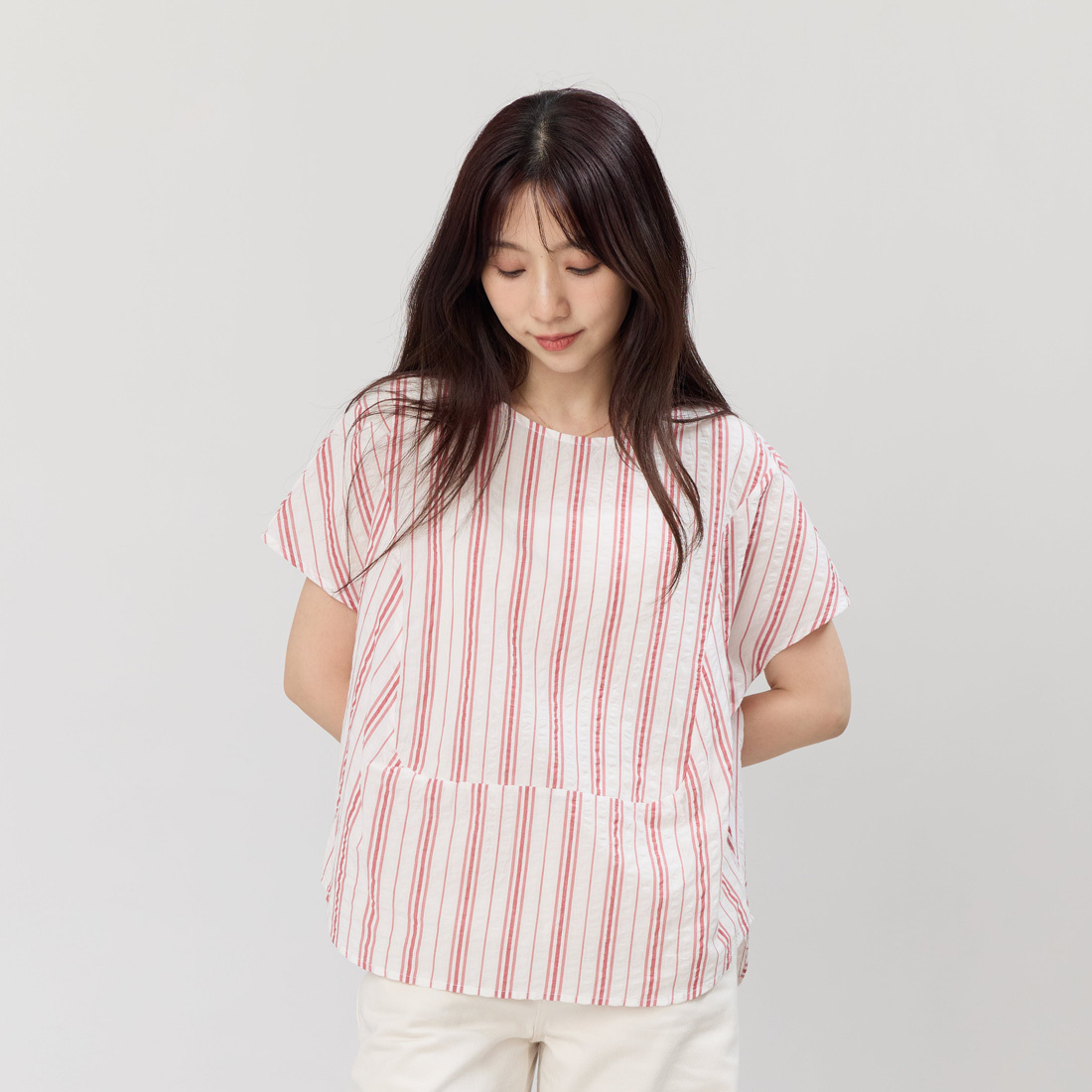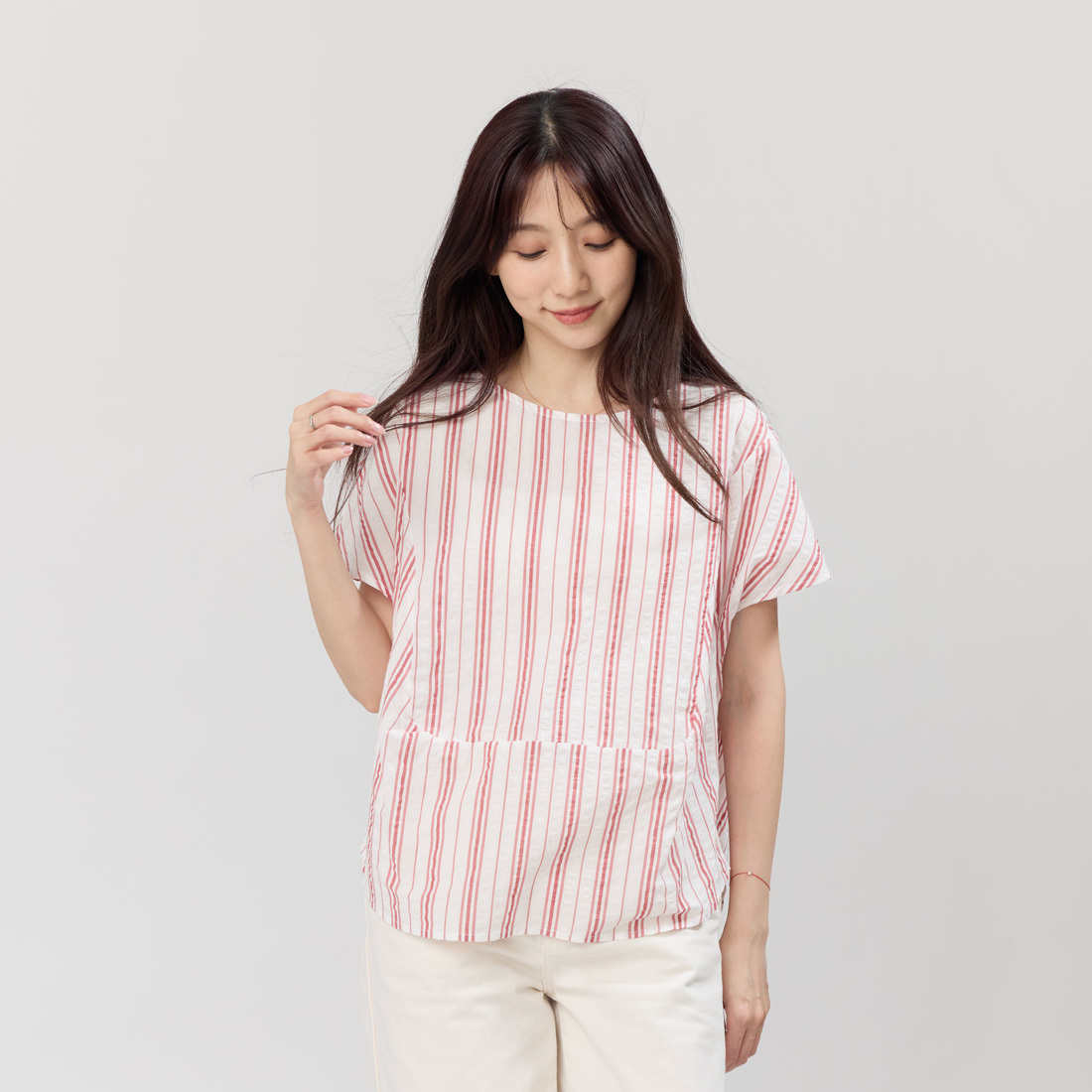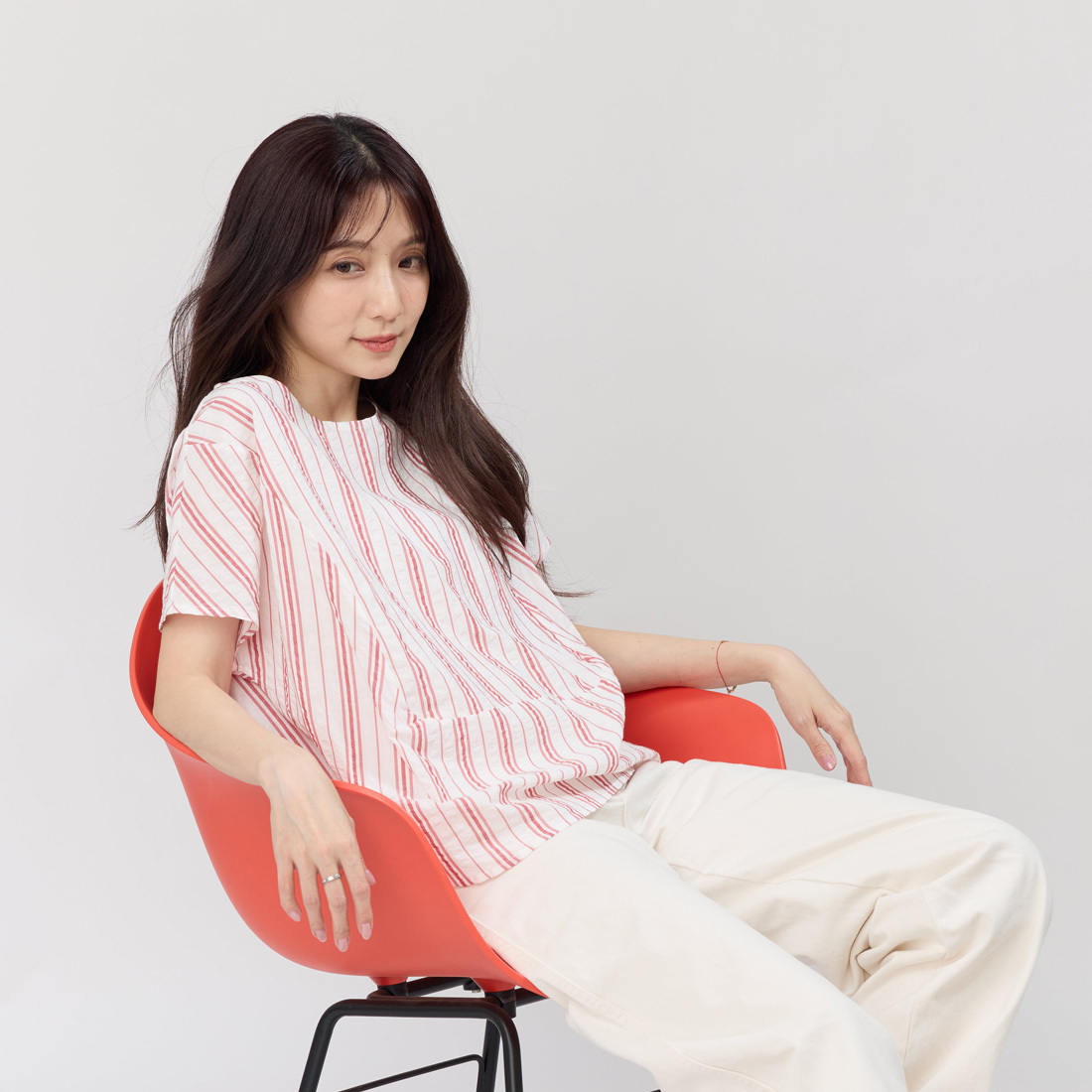 打破了傳統條紋的單調感,這款紅白條紋布料更加簡約俐落,帶來精神爽朗的視覺效果。